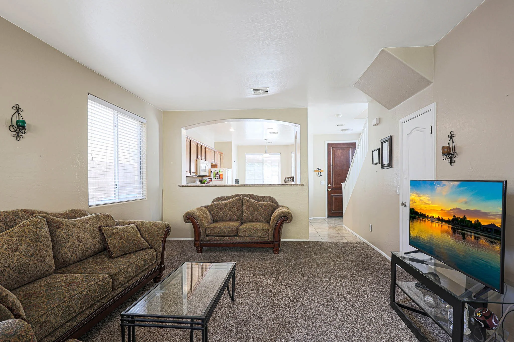 Welcome home to 3 bedrooms, 2.5 bathrooms, 2 car garage and a relaxing patio. Kitchen with breakfast bar, dining nook and pantry. Open main living space for easy entertaining. Laundry is located upstairs. Desert Springs Village community features grass area, playground and pool. Located close to the I10 and 101 freeways, shopping, dining and 10-15 minutes to the cardinals stadium which is hosting Super Bowl LVII. New TRANE HVAC in 2019.
