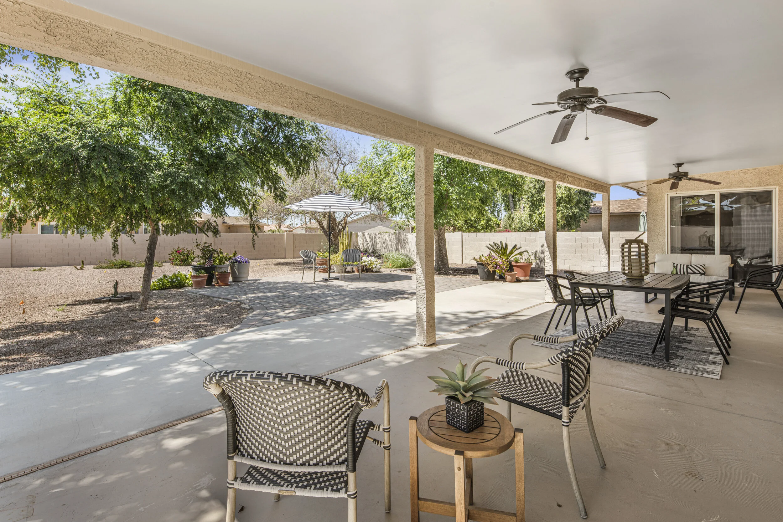 Gorgeous single level remodel in Arizona's resort-living community of Sun Lakes. On one of the largest lots in the neighborhood, this entertainer's delight boasts a huge covered patio and paved shady seating area while still leaving room to add a pool, grill station, outdoor bar, and/or putting green. Entry and living room flow nicely into open dining and kitchen in the highly sought after Alameda floor plan.